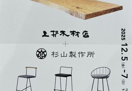 2025年12月5日(金)~7日(日) 西中島ショールームにて「一枚板カウンターと鉄の椅子」展を開催します。