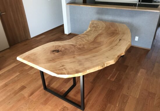少し前になりますが、オフィスの打ち合わせテーブル用としてご注文くださった栃の一枚板。